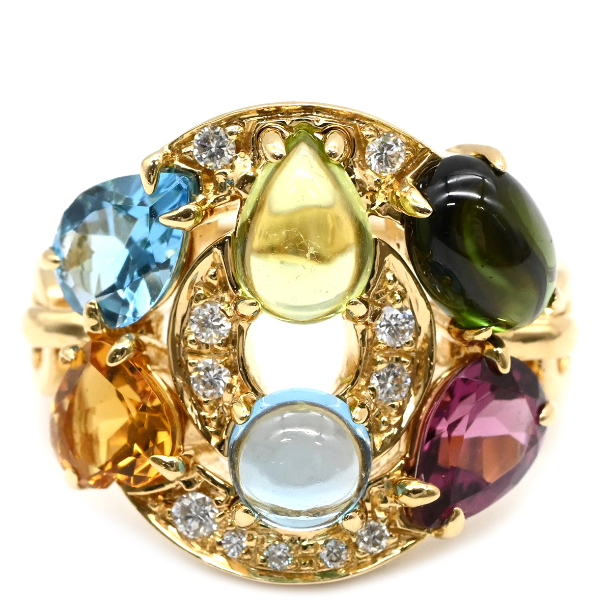 ブルガリ BVLGARI アストラーレ チェルキ イエローゴールド リング 指輪 ダイヤ 色石 マルチストーン 10号