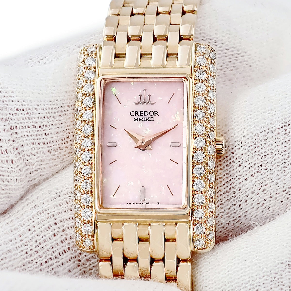 クレドール Credor GTWE944 5A70-3C90 クオーツ レディース メーカーOH済 K18RG無垢 純正ダイヤ ピンク オパール セイコー