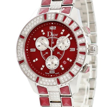 クリスチャン・ディオール Christian Dior クリスタル クロノグラフ CD11431FM001 クオーツ メンズ 純正ダイヤ 回転ベゼル 限定 赤