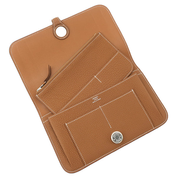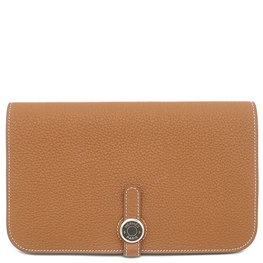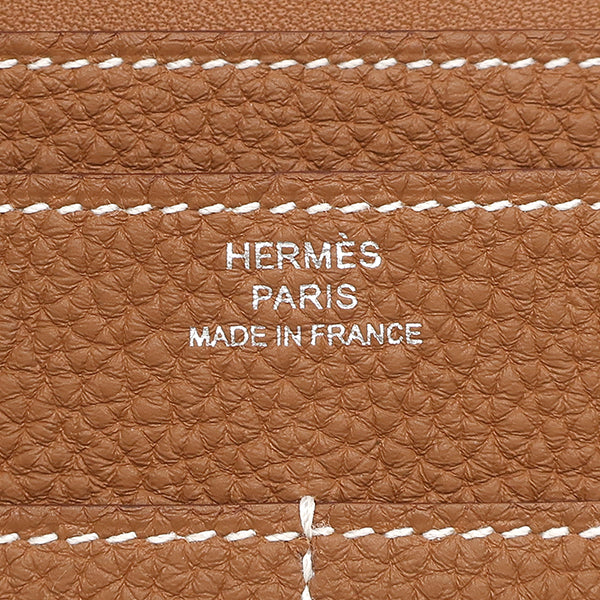 エルメス HERMES ドゴンデュオ ドゴンGM ゴールド トゴ 長財布 シルバー金具 茶 二つ折り財布 2024年製