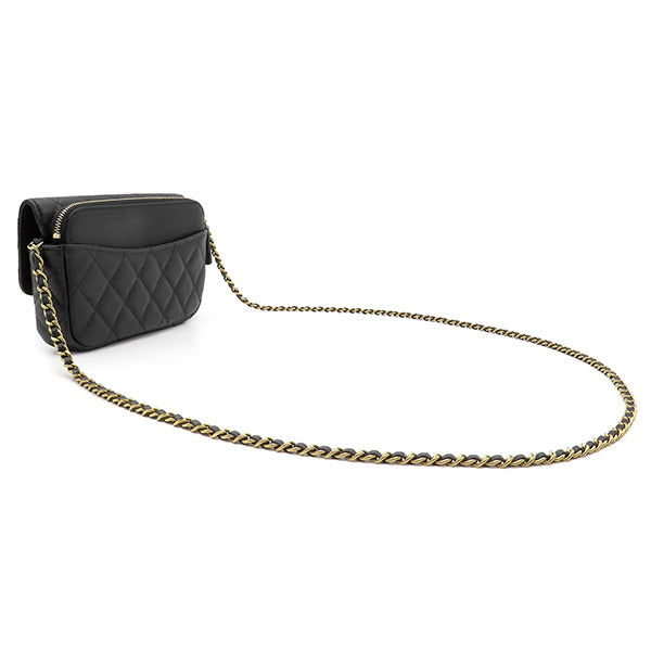 シャネル CHANEL フラップ フォンケース AP2096 ブラック レザー キャビアスキン ショルダーバッグ ゴールド金具 チェーンウォレット