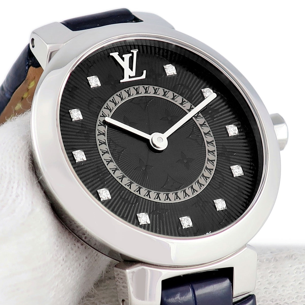 ルイヴィトン LOUIS VUITTON タンブール スリム PM QA143Z クオーツ レディース 純正ダイヤ モノグラム 黒 ブラック ギョウシェ
