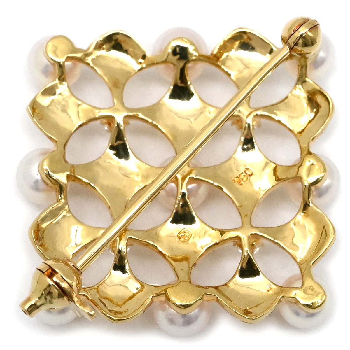 ミキモト MIKIMOTO ベビーパール ダイヤ パールホワイト×イエローゴールド ブローチ 白 Au750 18K 18金 YG 真珠 スクエア ひし形 ラウンドシェイプ