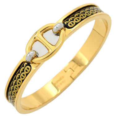 エルメス HERMES ミニクリック PM シェーヌダンクル ブラック×ゴールド メタル エナメル バングル ゴールド金具 バングル 黒 金