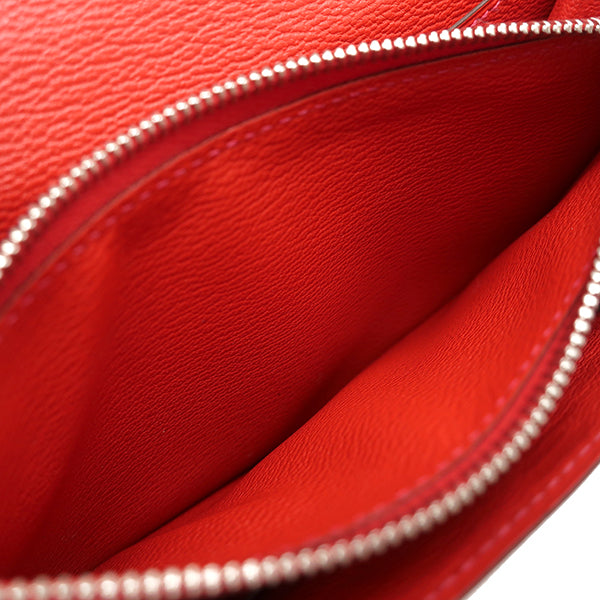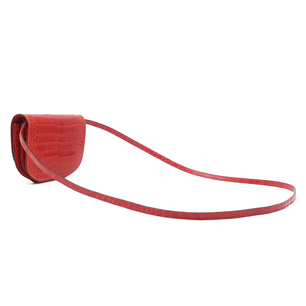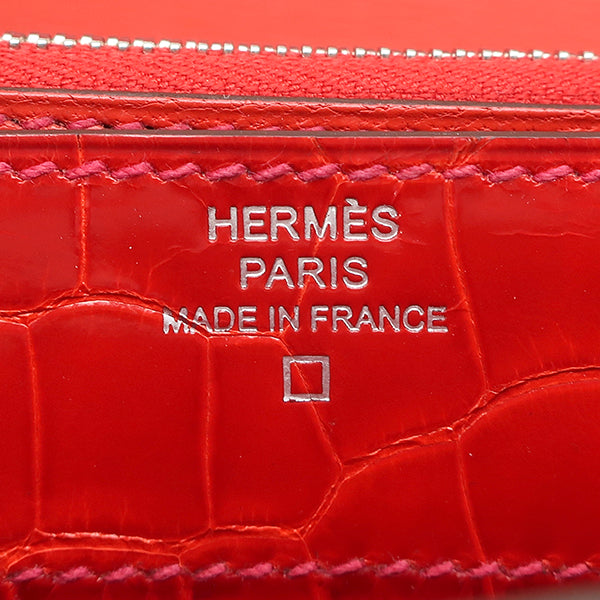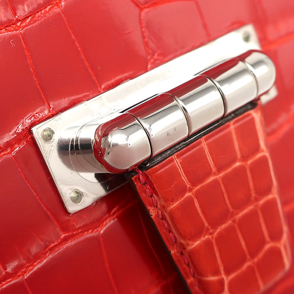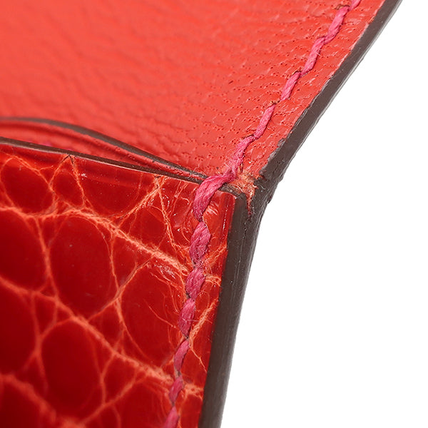エルメス HERMES ミニ コンヴォワイユール ゼラニウム アリゲーター ショルダーバッグ シルバー金具 赤 クロコ ショルダーウォレット
