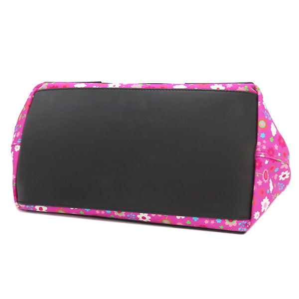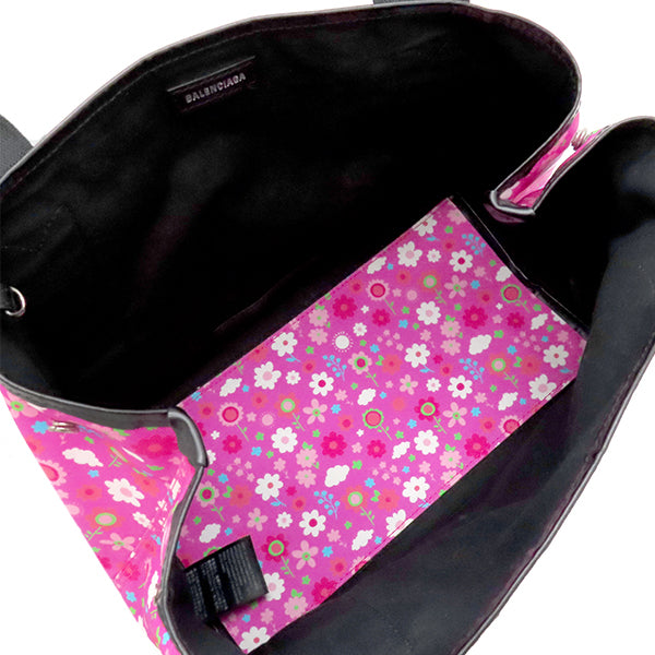 バレンシアガ BALENCIAGA ネイビーカバス S 339933 ピンク×ブラック キャンバス レザー トートバッグ シルバー金具 黒 花柄
