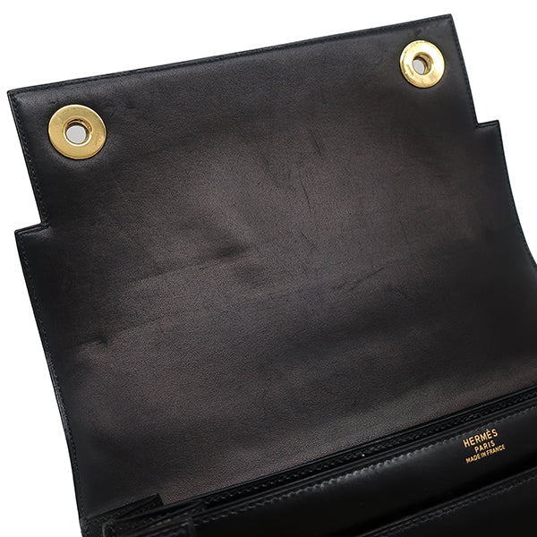 エルメス HERMES ピアノ ブラック ボックスカーフ ハンドバッグ ゴールド金具 黒
