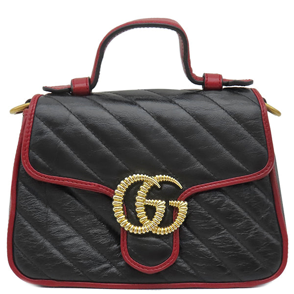 グッチ GUCCI GGマーモント ミニトップハンドル 583571 ブラック×レッド レザー 2WAYバッグ ゴールド金具 赤 黒 ショルダー