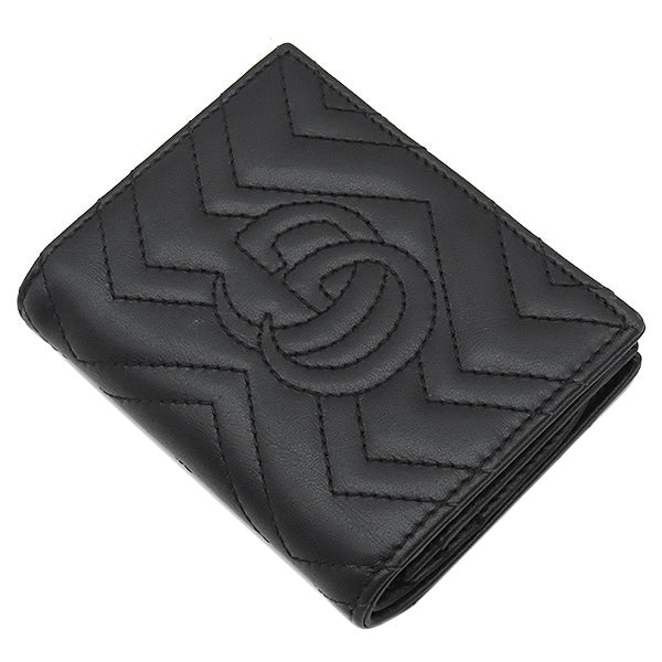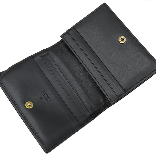 グッチ GUCCI ダブルG カードケース ウォレット 466492 ブラック レザー シェブロンキルティングナッパレザー 二つ折り財布 ゴールド金具 黒 GG