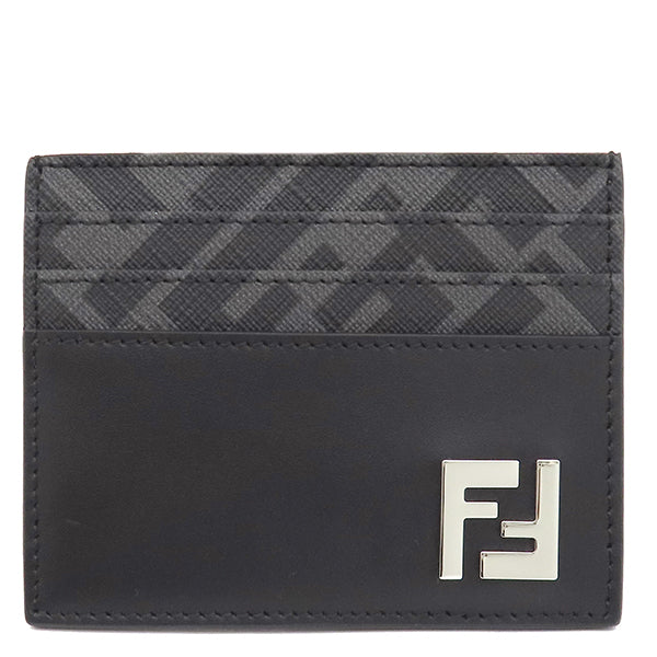 フェンディ FENDI FF スクエア カードホルダー 7M0164 ブラック レザー カードケース シルバー金具 黒 FF 名刺入れ