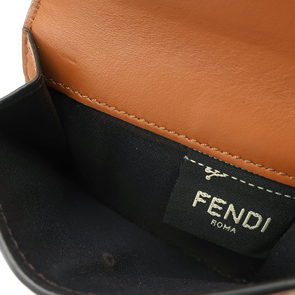 フェンディ FENDI ロゴ ローママイクロ 8M0395 ブラウン レザー 三つ折り財布 ゴールド金具 ミニ財布 茶