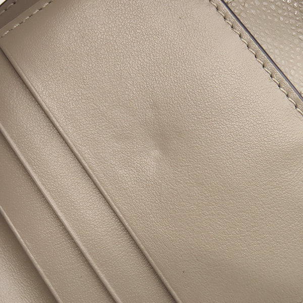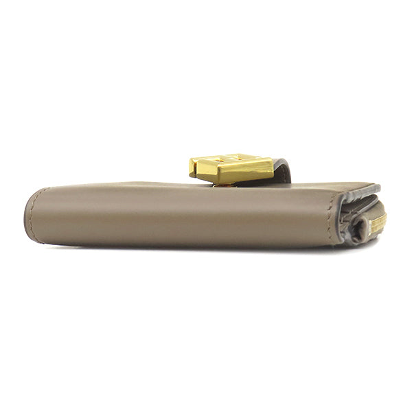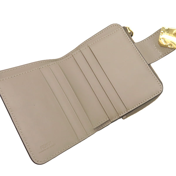 フェンディ FENDI FF ダイヤモンド 財布 グレー レザー 二つ折り財布 ゴールド金具 グレージュ コンパクトウォレット