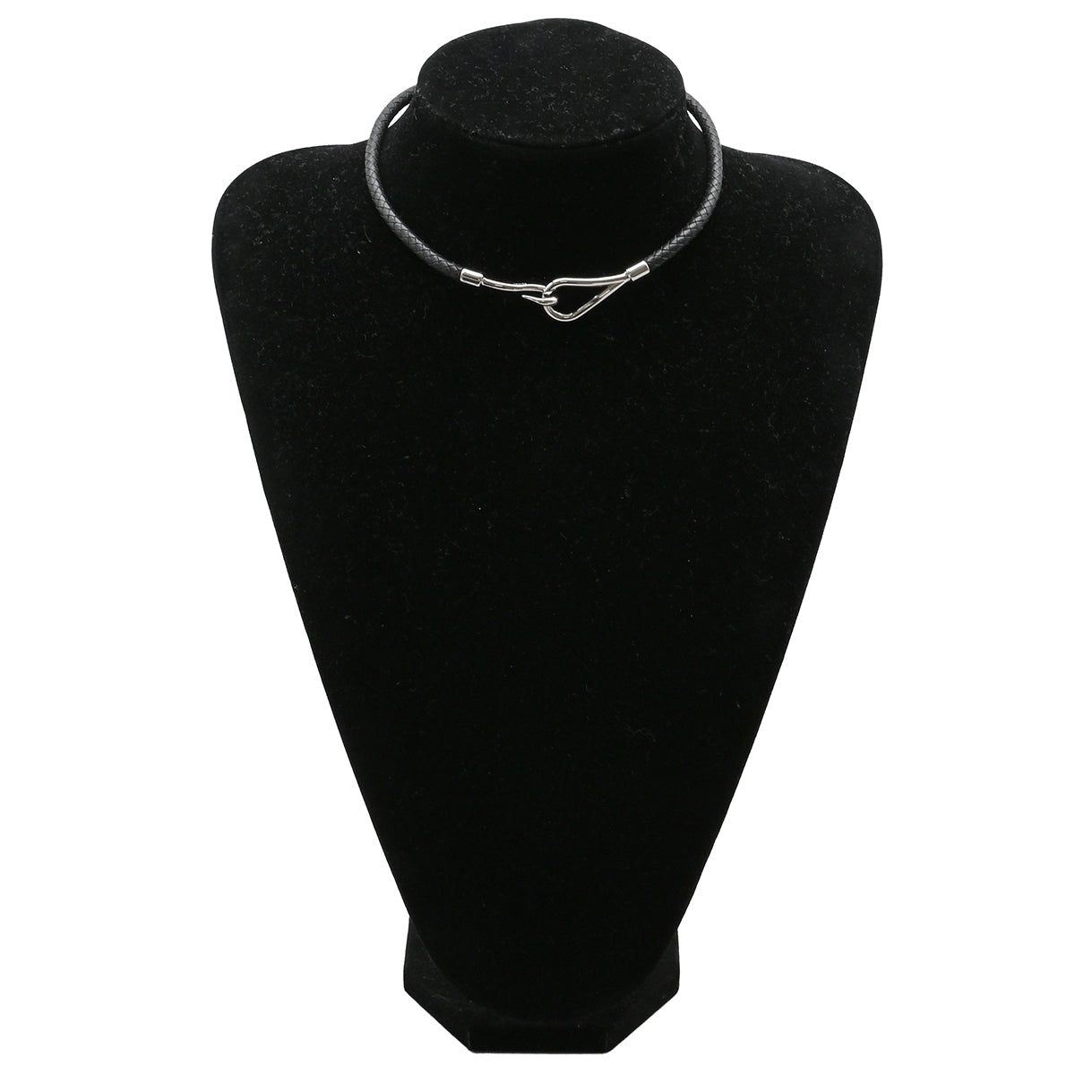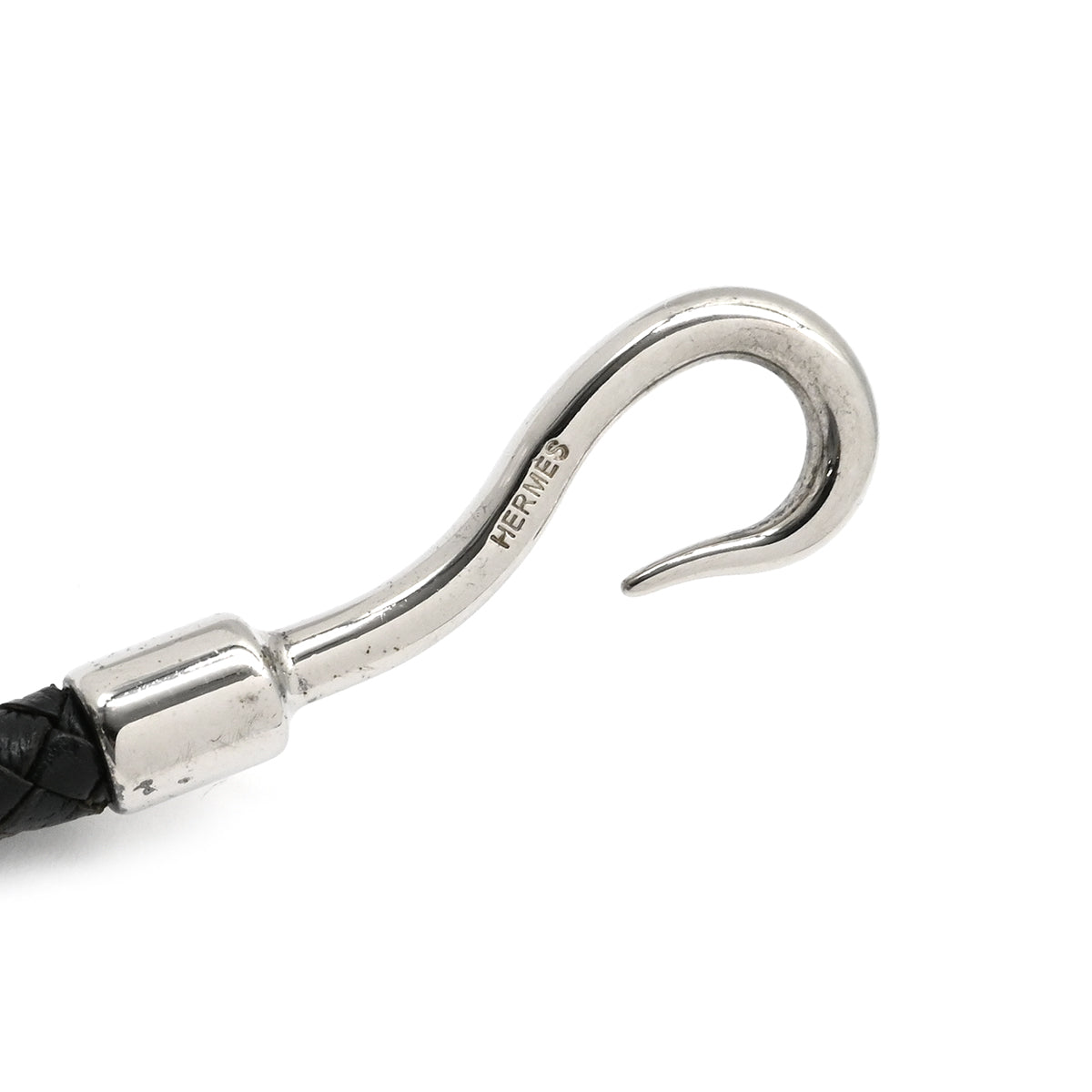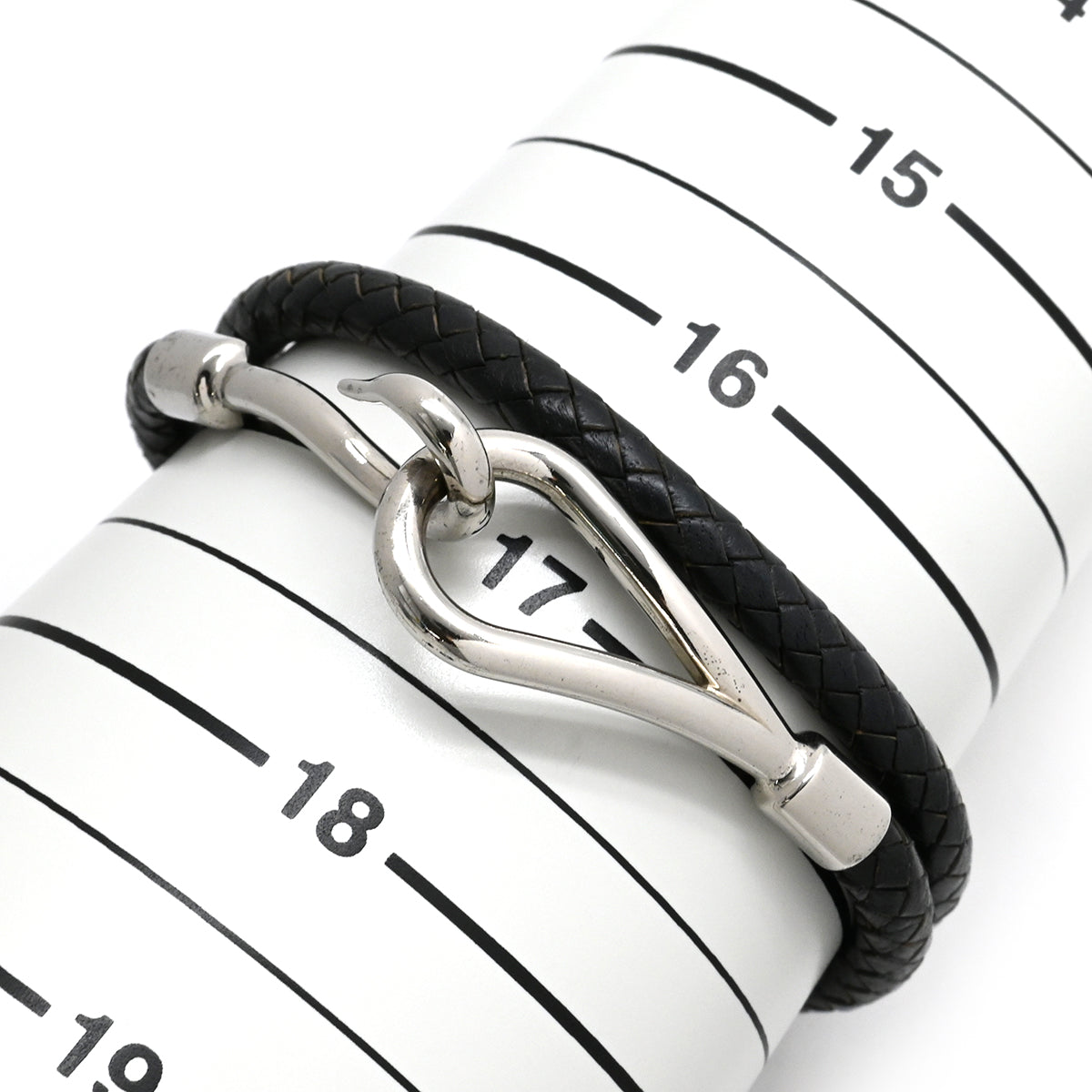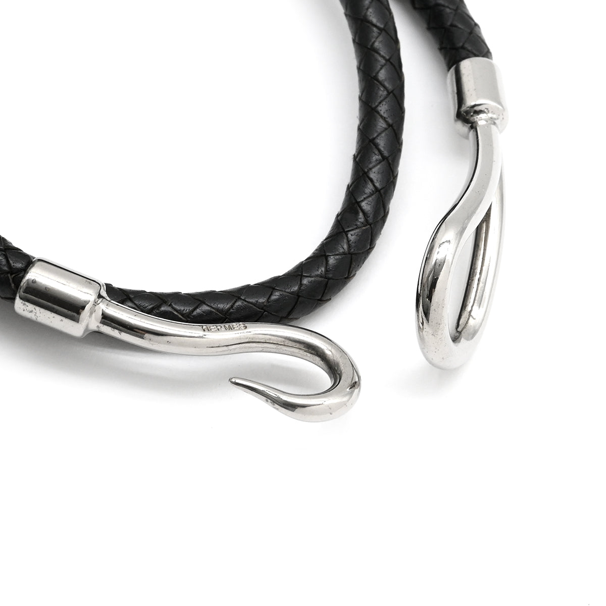 エルメス HERMES ジャンボ ブラック×シルバー レザー メタル チョーカー 二連ブレスレット
