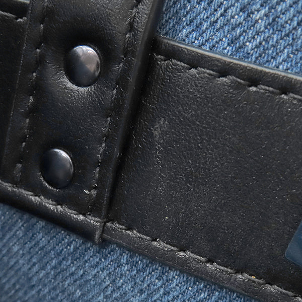 ヴァレンティノ VALENTINO VLTN ロゴ 2Y2B0B78 ブルー×ブラック デニム レザー 2WAYバッグ ブラック金具 青 黒 ショルダー トート スタッズ