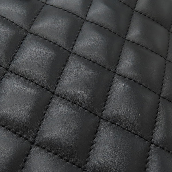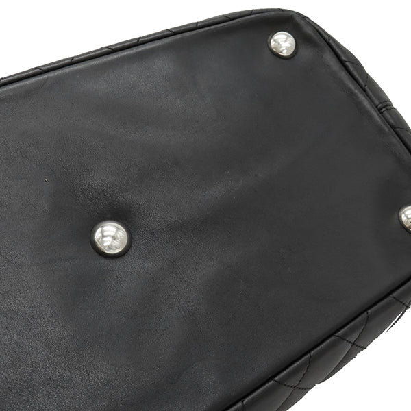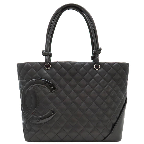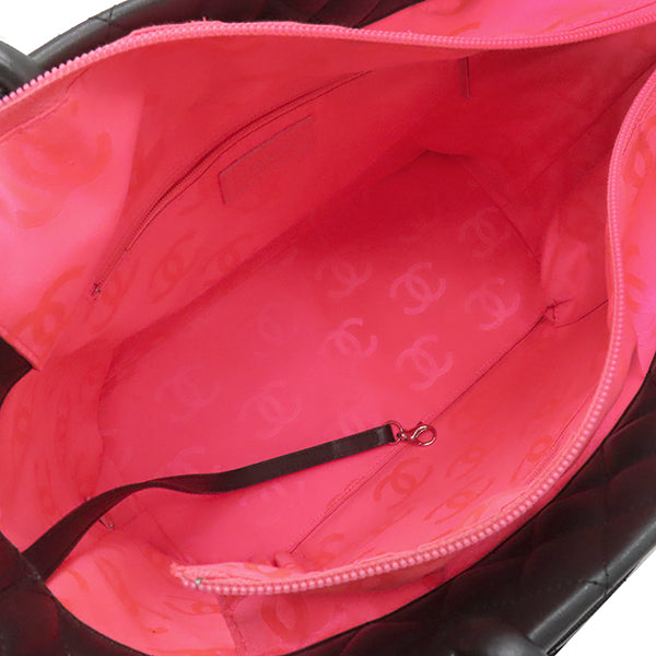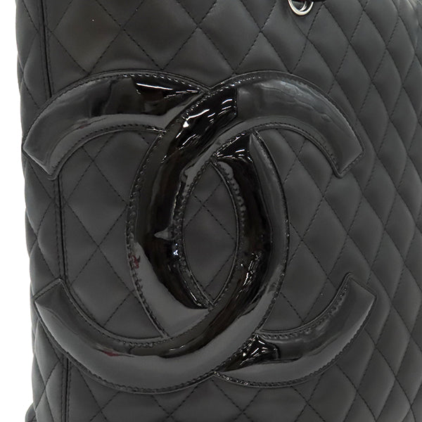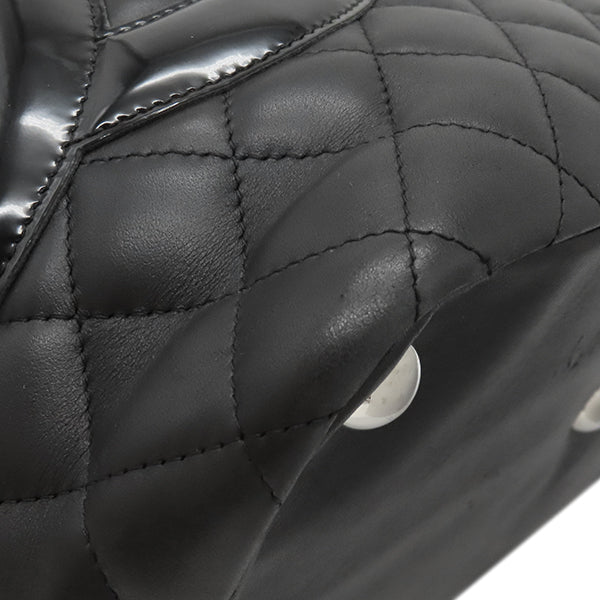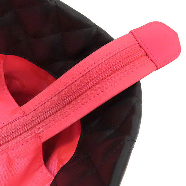 シャネル CHANEL カンボンライン A25169 ブラック レザー エナメル トートバッグ シルバー金具 黒 ピンク キルティング ココマーク