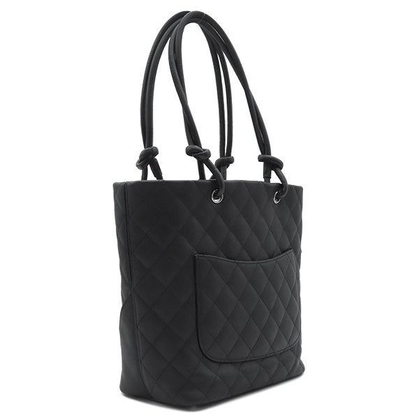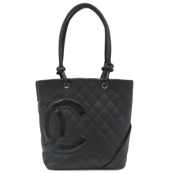 シャネル CHANEL カンボンライン ミディアム A25167 ブラック レザー エナメル トートバッグ シルバー金具 黒 ピンク キルティング ココマーク