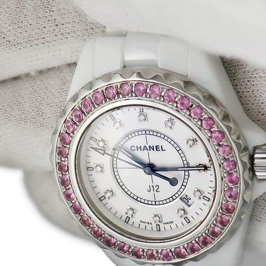 シャネル CHANEL J12 ホワイト セラミック 33mm H1628 クオーツ レディース 純正12Pダイヤ ピンクサファイア 白